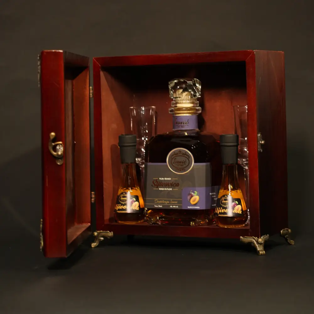 Bilo da je u pitanju poslovni poklon, znak zahvalnosti ili poseban porodični trenutak, Destilerija Ivović nudi prezentaciju koja govori više od reči. Jer pravi kvalitet zaslužuje dostojno pakovanje.
